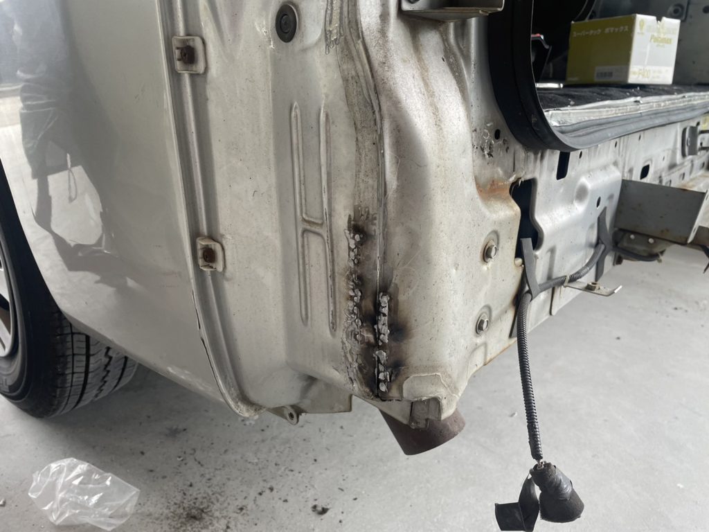 バンパー裏部分。ボディの角ですね。鉄板合わせ部が口を開いてしまっていたので溶接でしっかりと閉じます。