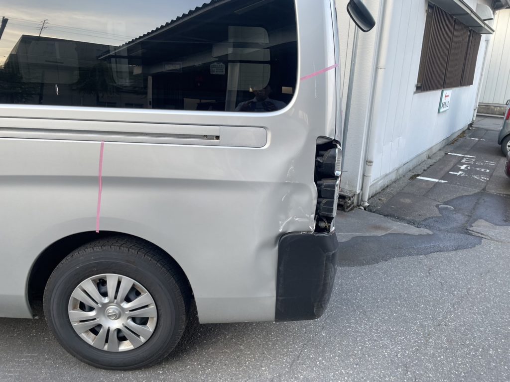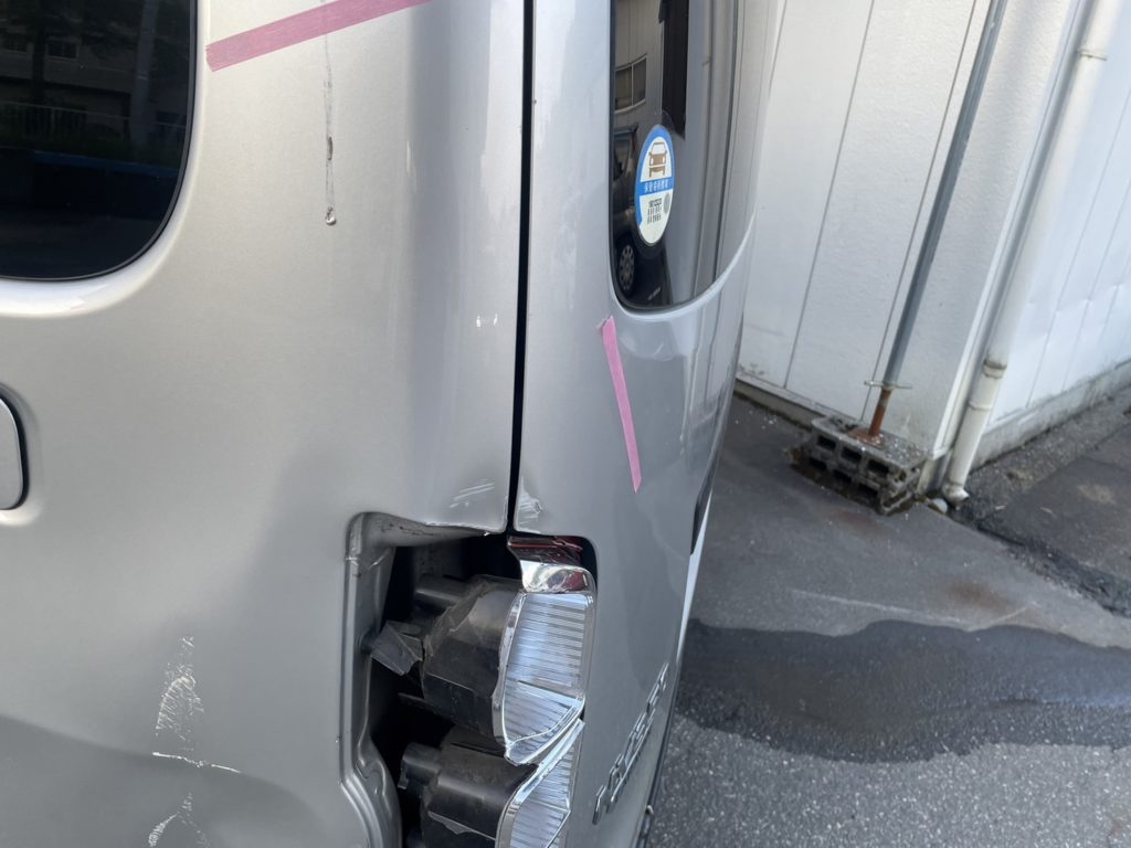 テールランプあたりはメシャッ!と潰れております。分かりにくいですがホイールアーチ部分も歪みが出てます。