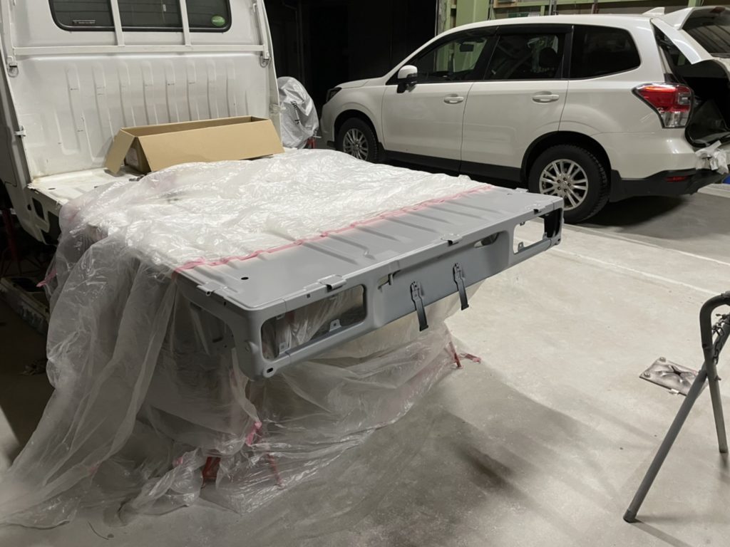 いかがでしょう。修理完了です。あおり部分やフロント側のホワイトと比べても違和感なく塗れてると思います。勿論あおり部分も違和感なく開閉いたします。