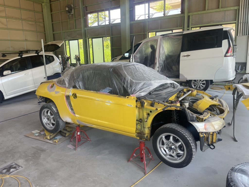 本日の作業はホンダ ビートのオールペン(全塗装)です。この頃の車ももうネオ旧車(ネオクラシック・ネオクラ)と呼ばれる