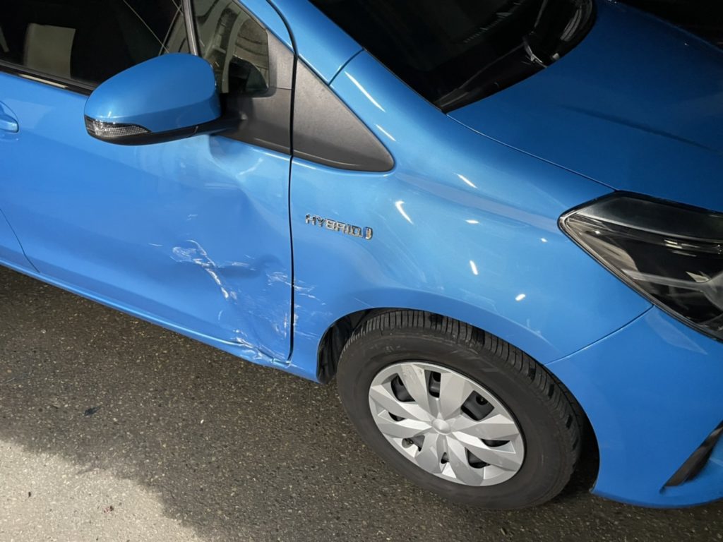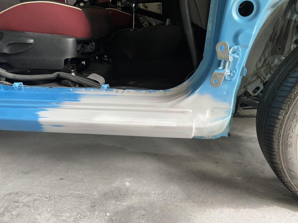 ドアとフロントフェンダー(クォーターパネル)だけではなくロッカーパネル(サイドシル)までへこんでしまっております。