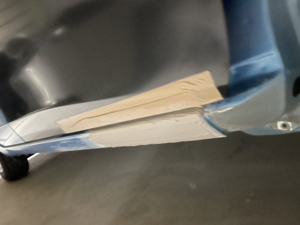 フロントフェンダーも同じ工程を経て塗装ブースに入ります。
